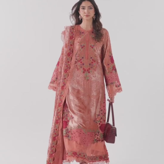 Coral Charm Embroidered Dhanak 3-piece Outfit