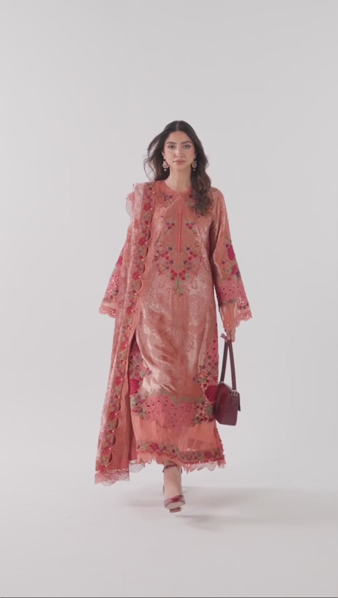 Grace your wardrobe with this Coral Charm embroidered Dhanak suit, designed with delicate floral patterns and elegant details. Perfect for daytime gatherings, festive occasions, or sophisticated casual wear.