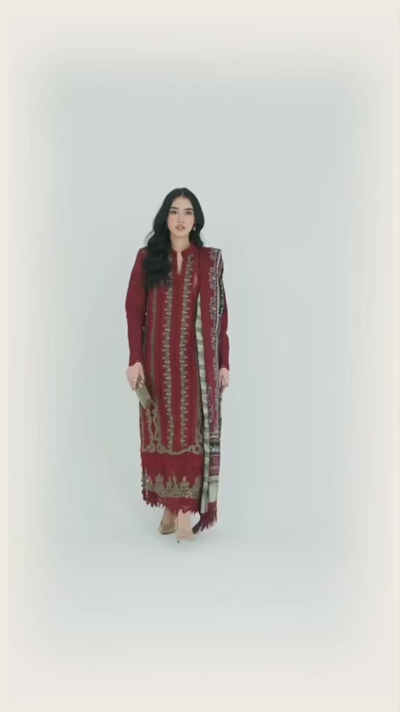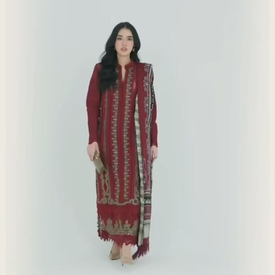 Crimson Grace Embroidered 3-piece Dhanak Suit