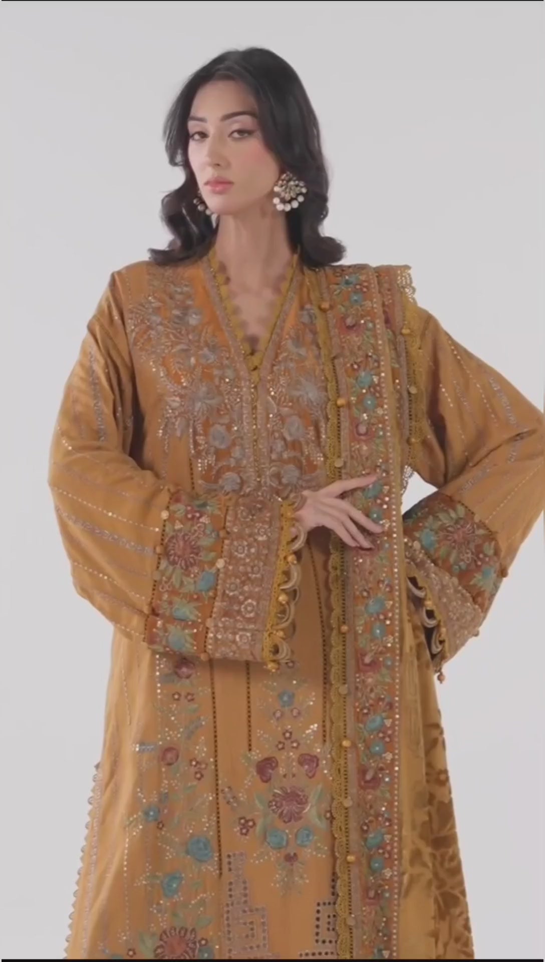 Make a bold style statement with this elegant mustard embroidered Dhanak suit. Designed with intricate embroidery and premium detailing, it’s the perfect blend of tradition and sophistication for festive occasions and formal gatherings.