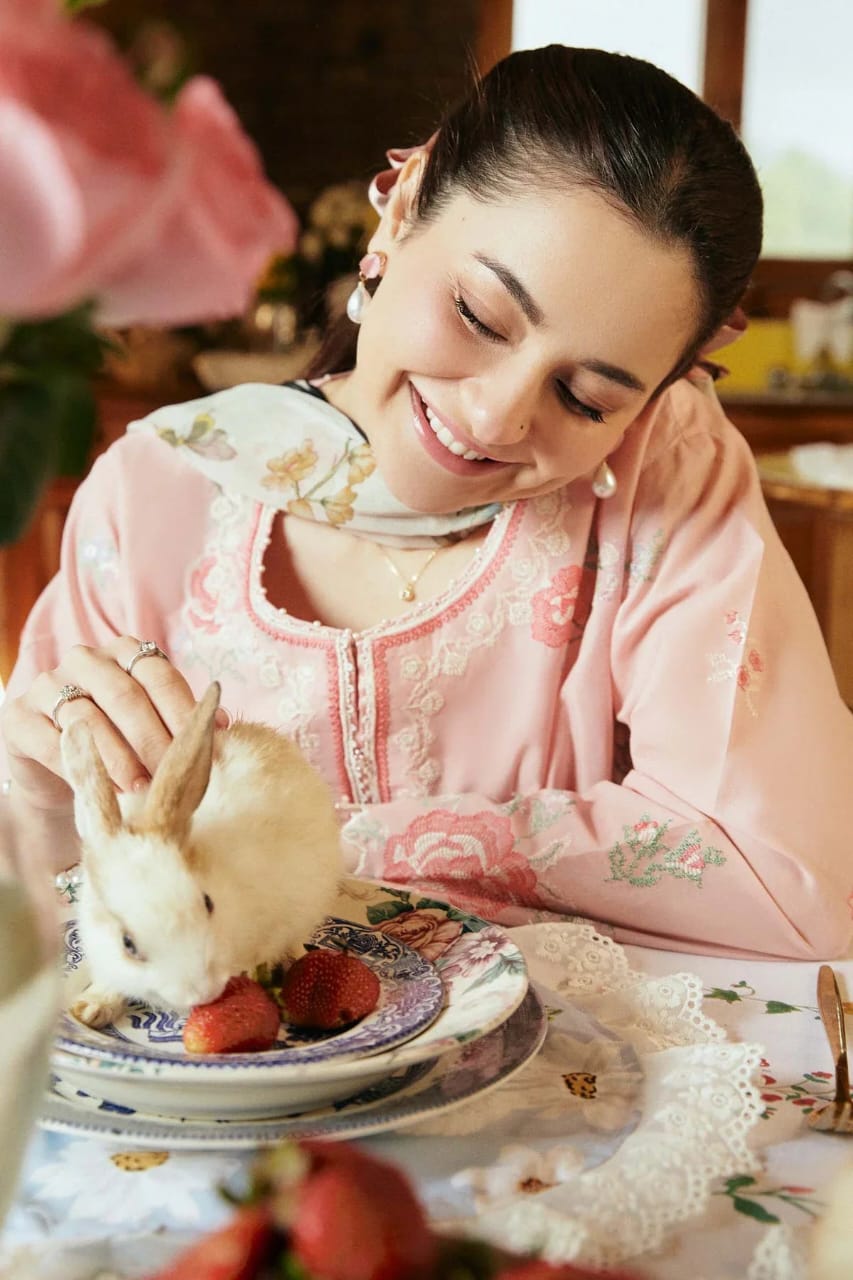 Crafted from premium quality fabric, this elegant Rose Pink 3-piece suit is a timeless addition to any wardrobe. The soft and breathable material ensures all-day comfort, while its luxurious texture adds a refined touch to your look. Adorned with intricate floral embroidery in pastel and gold tones, the outfit beautifully blends traditional artistry with modern elegance.